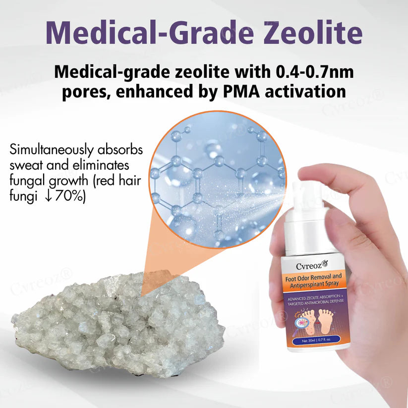 Cvreoz® represents a breakthrough in foot care technology, combining medical-grade zeolite with precision-engineered 0.4-0.7nm pores and advanced PMA activation technology. This innovative formulation creates a multi-layered defense system that simultaneously targets the root causes of foot odor: fungal infections, bacterial overgrowth, and excessive moisture. Unlike conventional treatments that only address surface symptoms, Cvreoz® penetrates deep into the skin's microstructure to eliminate odor-causing organisms while providing long-lasting antiperspirant protection that breaks the destructive moisture-bacteria-fungal cycle.